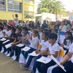 Acompañados/as por docentes de enseñanza básica y equipo de gestión, los y las estudiantes leyeron un pequeño texto frente a los y las presentes, que también incluía a familiares.