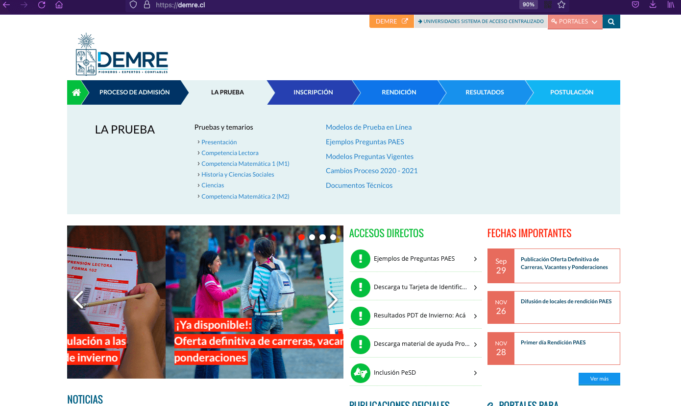 Link información oficial PAES