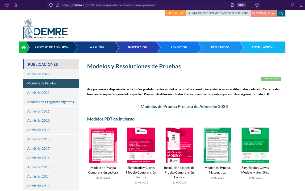 Pruebas anteriores: pese a que hoy la prueba es distinta, te servirán los materiales que encontrarás en el siguiente enlace, donde se entregan ejemplos de la prueba oficiales, y pruebas anteriores aplicadas.